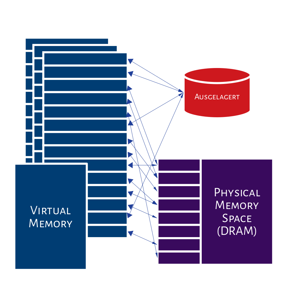 cat /proc/<PID>/maps) - Die Umsetzung des Pagings erfolgt HW-Unterstützt durch MMU (Memory Management Unit / Paging Unit)